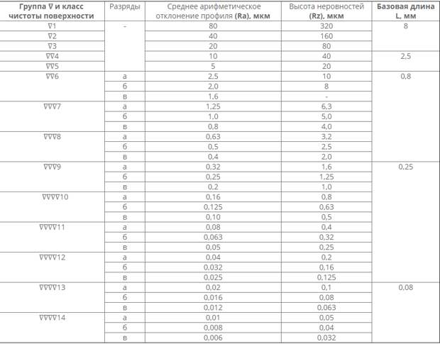 Таблица шероховатости поверхности в зависимости от вида обработки: при механической, токарной, черновой, чистовой обработке