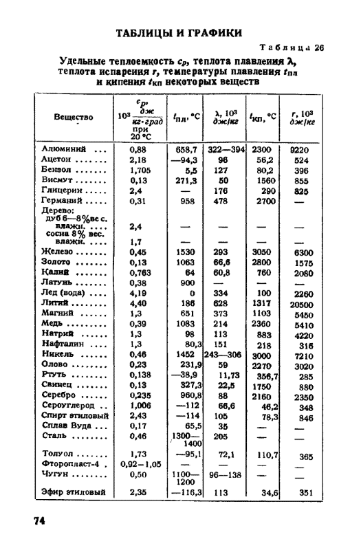 В таблице представлена температура плавления металлов tпл, их температура кипения tк при атмосферном давлении, плотность металлов ρ при 25°С и теплопроводность λ при 27°С.