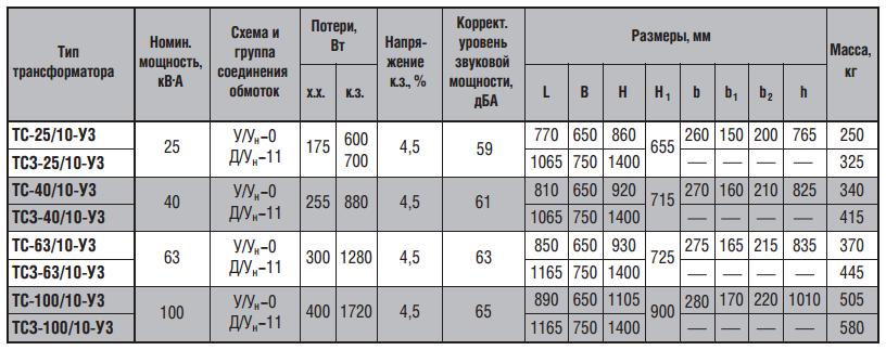 Номинальная мощность составляет 100 кВА, а класс обмотки – 10 кВ.