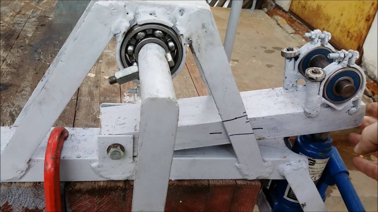 - В центре основания приварить стойки для центрального вала и закрепить его шпилькой с гайкой.