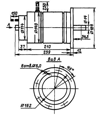 Электродвигатель УАД-32 на подставке в комплекте с конденсаторами, в рабочем состоянии. Работает практически бесшумно. Подшипники в норме, биения нет. Электродвигатель УАД-32 универсальный асинхронный электродвигатель однофазного и трехфазного включения с короткозамкнутым ротором. Электродвигатель УАД-32 предназначен для использования в качестве исполнительного механизма в различных приводах, счетнорешающих устройствах и следящих системах. Асинхронные электродвигатели серии УАД могут работать от трехфазной или однофазной сети напряжением 220 В переменного тока частотой 50 Гц. Режим работы – продолжительный S1. Технические характеристики электродвигателя УАД-32: * Длина корпуса – 70 мм; * Диаметр корпуса – 50 мм; * Диаметр вала – 4 мм; • Номинальная мощность, Вт: – однофазный режим …… 5 – трехфазный режим …… 7 • Напряжение питания, В …… 220 • Частота вращения, об/мин: – однофазный режим …… 2750 – трехфазный режим …… 2700 • Потребляемый ток, А: – однофазный режим …… 0,11 – трехфазный режим …… 0,11 • Коэффициент полезного действия, %: – однофазный режим …… 25 – трехфазный режим …… 30