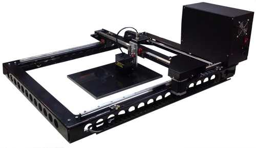 Конструкция станка состоит из алюминиевых профилей, специализированных приводов двух разных типов, самой иглы, двух осей для перемещения каретки, электромагнита нужной силы и современного ЧПУ, что отвечает за точность гравировки.