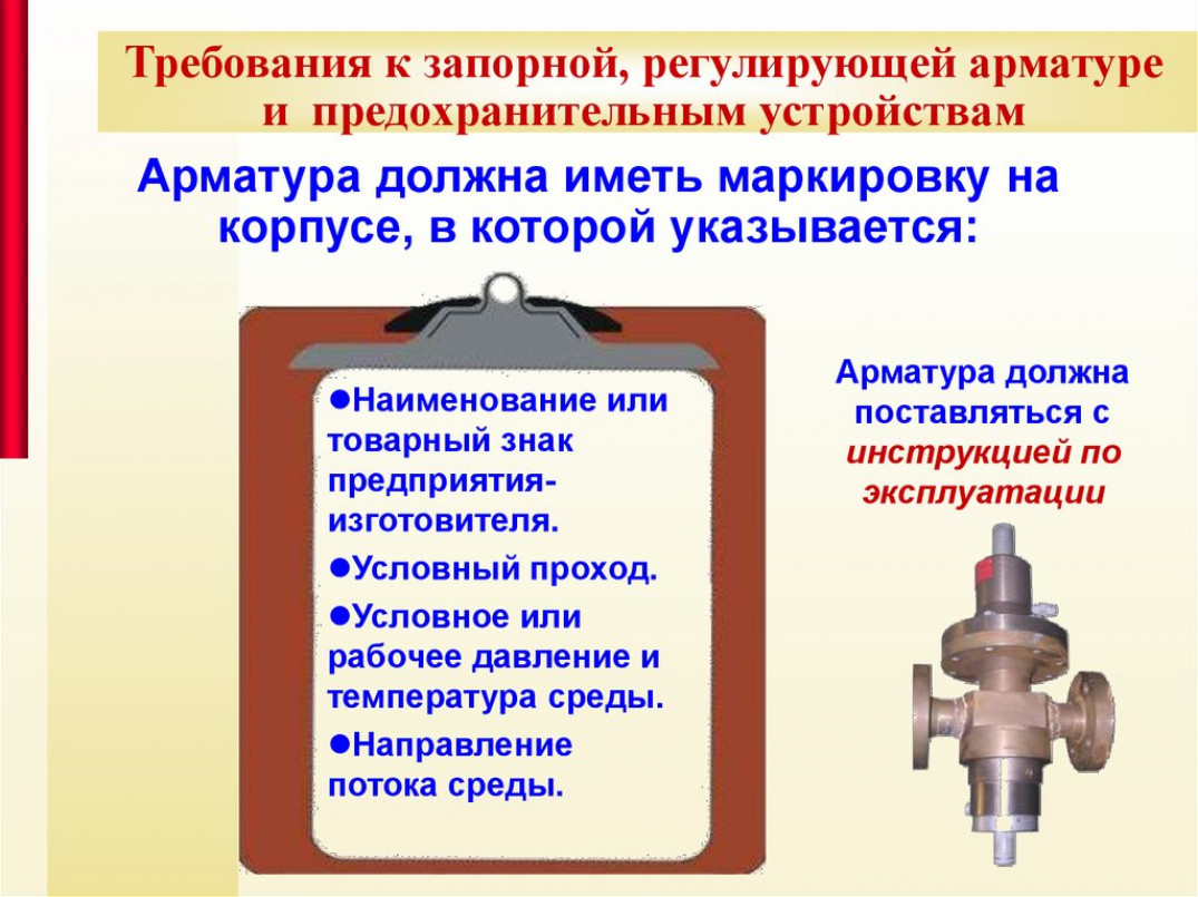 Предохранительные клапаны изготавливаются по ГОСТ и допускаются к использованию в соответствии со следующими отраслевыми стандартами, ТУ и ПБ: