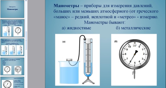 Манометр — это прибор для измерения искусственно созданного давления газа или жидкости в замкнутой системе. |