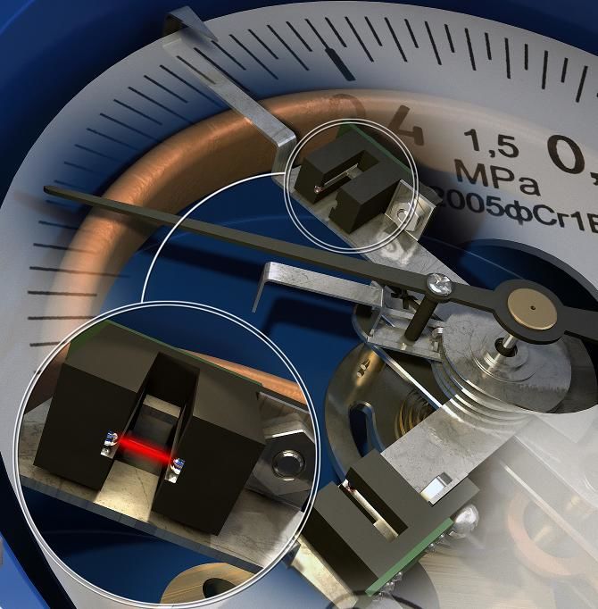 - Поскольку смещение свободного конца трубки Бурдона незначительное, требуется усиление.