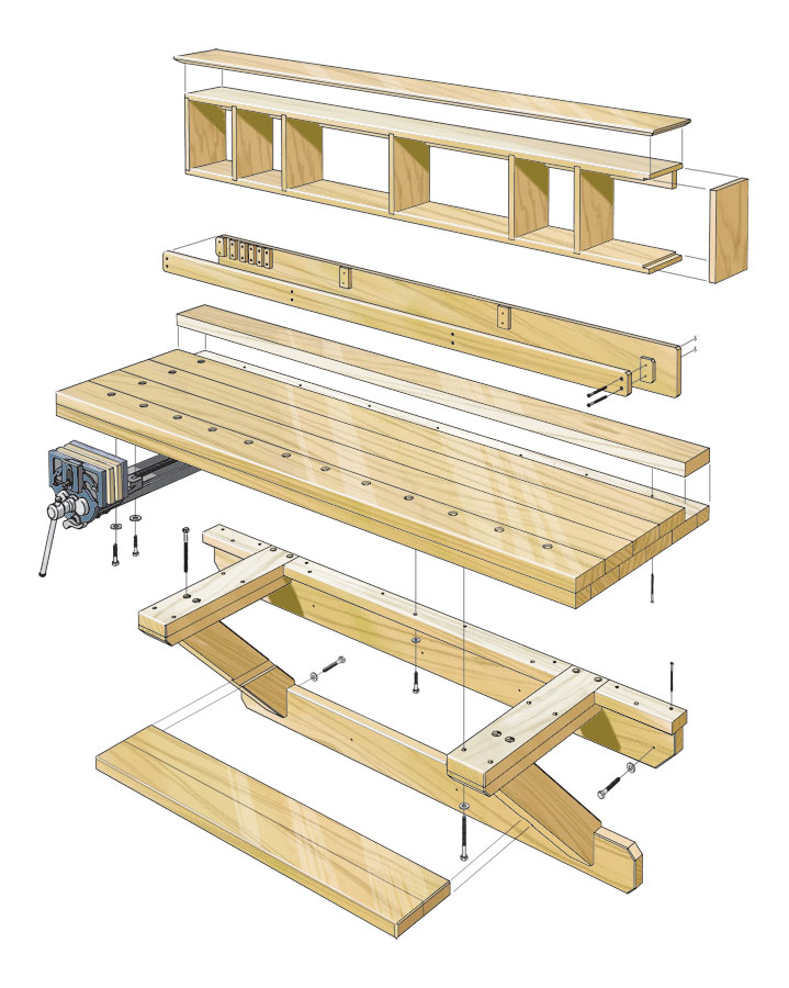 И тут, пролистывая американский журнал ShopNotes (рекомендую) №119 наткнулся на схему навесного верстака. Его, в чуть упрощенном варианте и решил сделать.