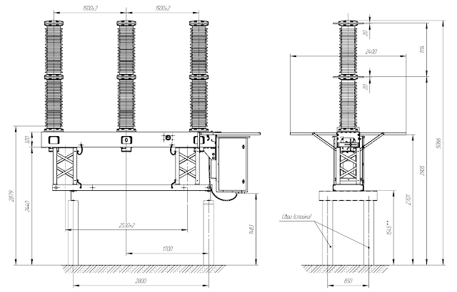 | Габариты (без сборной опорной конструкции), мм, длина, ширина, высота трехполюсное / однополюсное исполнение | 4180х870х3790 / 1637х871х4396 |