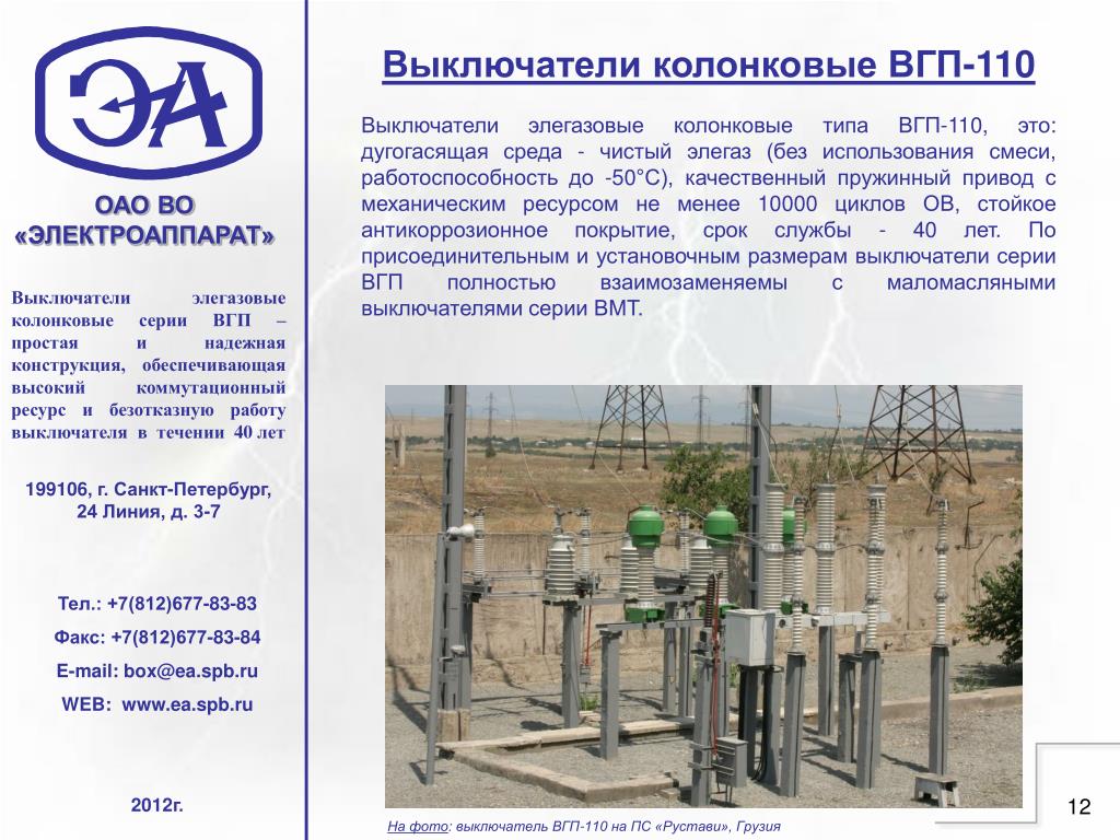 Вгт 110 технические характеристики: Выключатель ВГТ-110 элегазовый колонковый (У1, УХЛ1*)