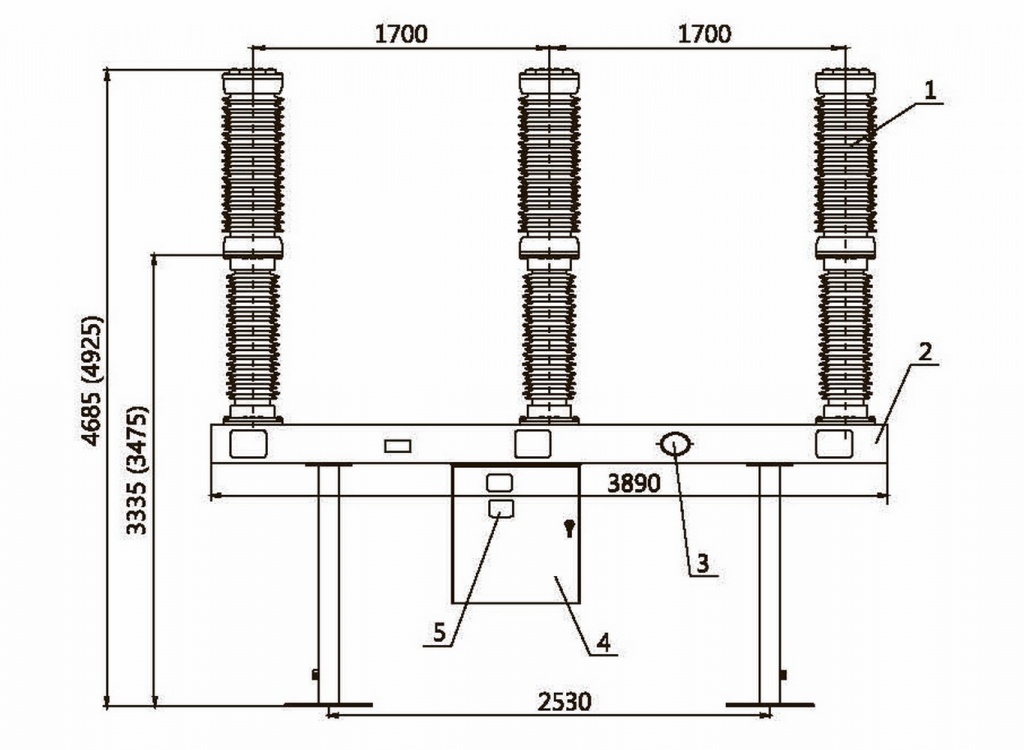 - Базовое исполнение выключателей без опорных металлоконструкций. Выключатели могут поставляться по заказу с высокими заводскими опорными стойками, а также с укороченными заводскими стойками для замены маломаслянных выключателей серии ВМТ.