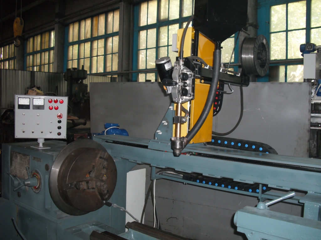 Сущность этого способа состоит в том, что деталь, вращающаяся в центрах токарного станка, наплавляется с помощью специальной головки. Головка обеспечивает подачу на деталь и вибрацию электродной проволоки диаметром 1,0—3,0 мм.