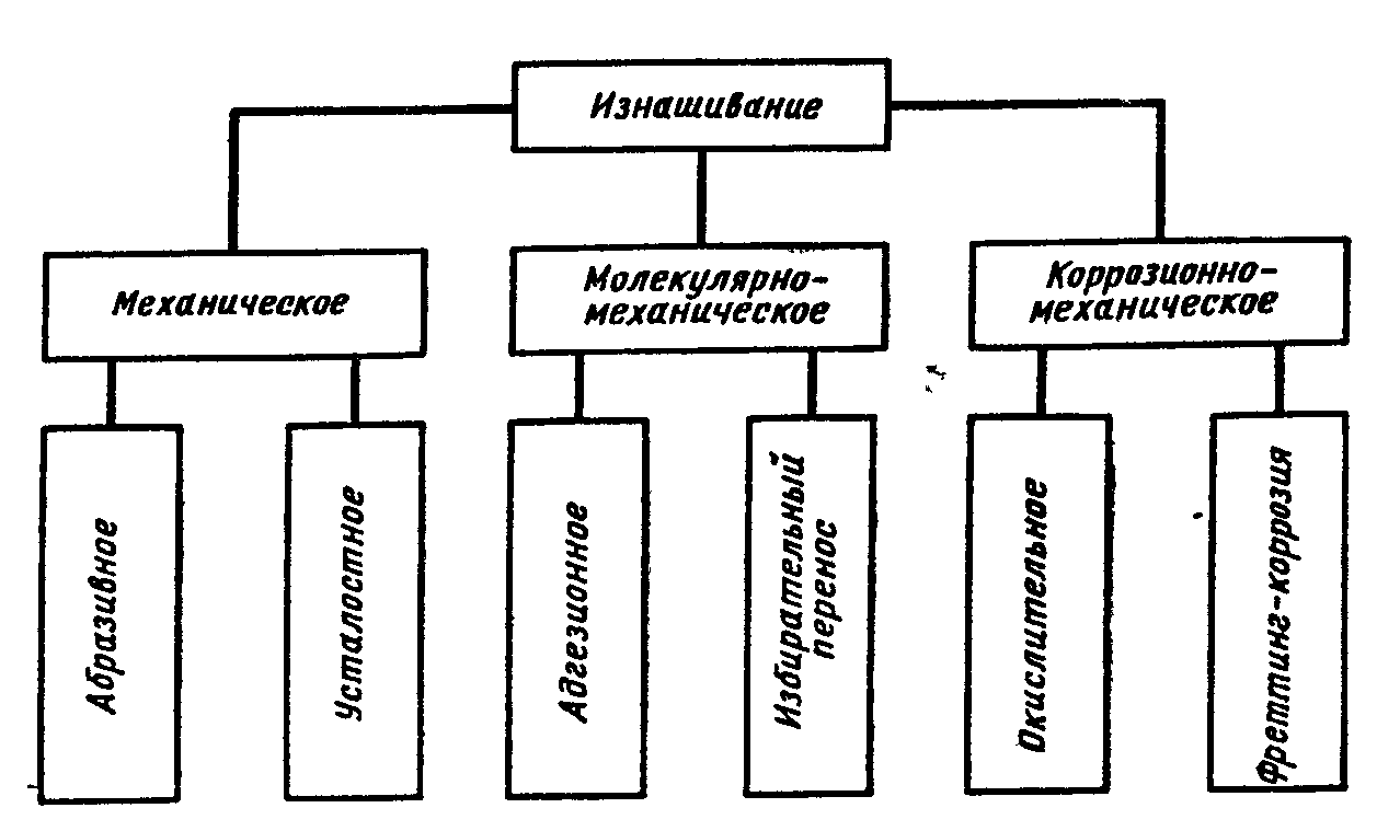 Исходя из видов взаимодействий сопряженных поверхностей взаимосвязанных деталей и соответствующих им видов износов и разрушений, в практике различают несколько видов изнашивания.