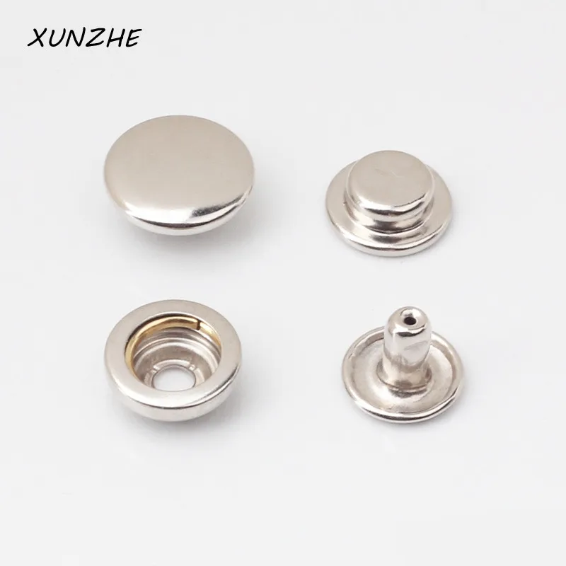 Широко применяется при пошиве спортивной одежды, верхнего гардероба, изделий из джинса. Комплект кнопки состоит из двух верхних и двух нижних частей. Во время установки важно не перепутать: «крышечка» застежки располагается с лицевой стороны верхнего полотна вещи, а «ножка» — с изнанки. И соответственно располагают оставшиеся два элемента кнопки на нижней поле одежды.