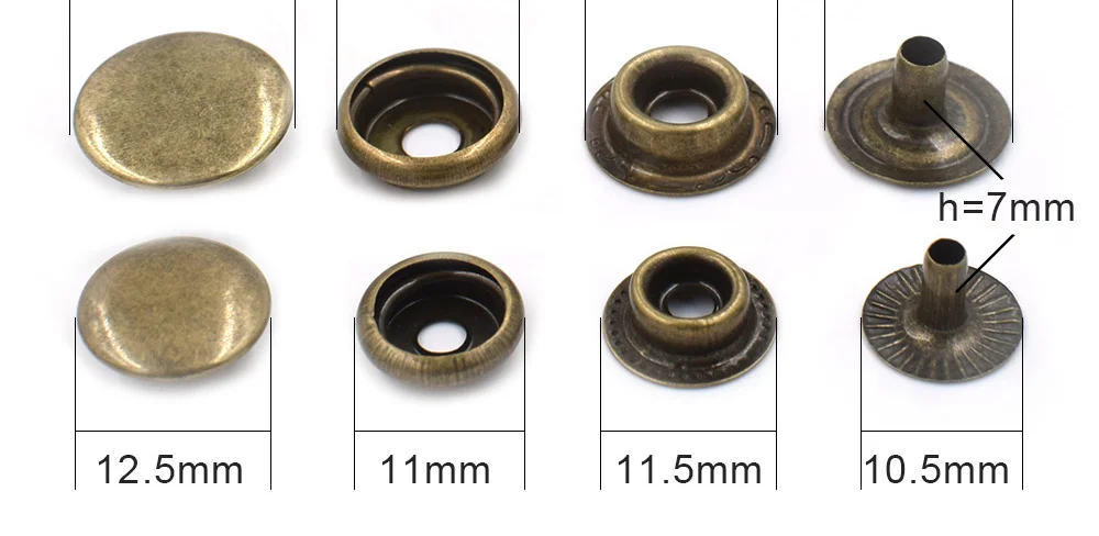 Надо постараться, чтобы диаметры дырки в материале и ножки кнопки совпадали или же, отверстие было немного меньше. Детали закрепляются специальным инструментом, который можно купить отдельно или в наборе с застежками. Оборудование комплектуется особым прессом-матрицей и специальными насадками – пуансонами (разных диаметров). В домашних условиях умельцы при установке кнопок пользуются обычными молотком, крестовой отверткой или дюбелем, деревянным бруском, плоскогубцами, спицей.