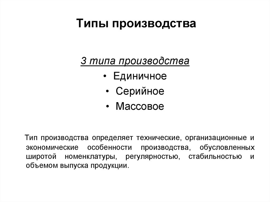 Виды и типы производства и их технико-экономическая, характеристика. Типы и особенности организации производства