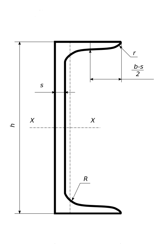 В сечении швеллер имеет форму перевернутой буквы “П” русского алфавита.