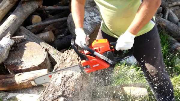- Уводит в сторону шину пилы. При глубоком прорезании бревна не получается выдержать направление пропила.