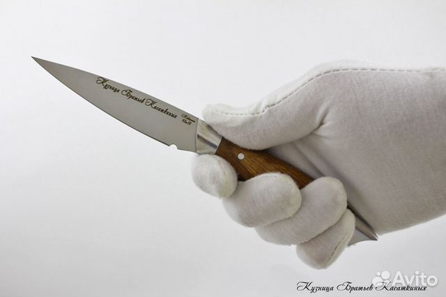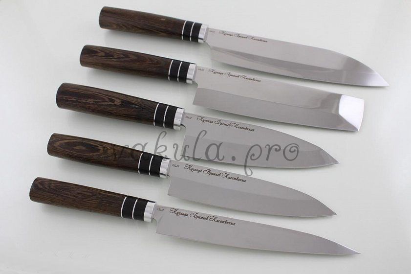 , Ltd. для обкладок многослойных кухонных ножей. Отлично держит режущую кромку, но из-за большой твердости, она не обладает необходимой ударной вязкостью и переругать кости ножом из этой стали не стоит. Идеальная для клинков, предназначенных для качественного реза.