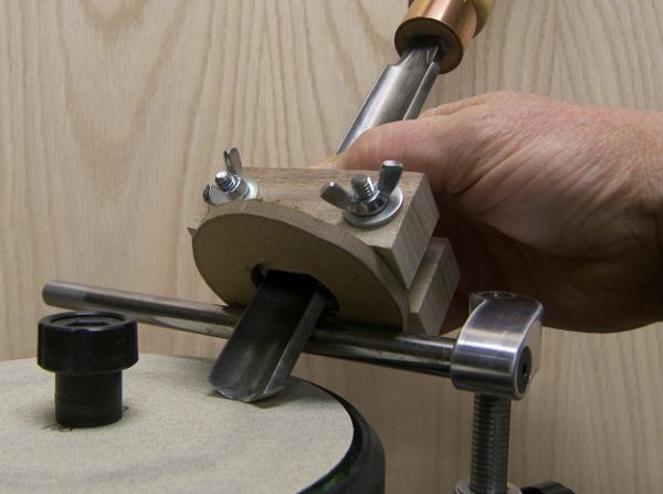 Примечание. Описанная операция годится для прямых и полукруглых стамесок, а также для верстачных ножей. Для V-образных инструментов требуется другая методика затачивания (см. ниже).