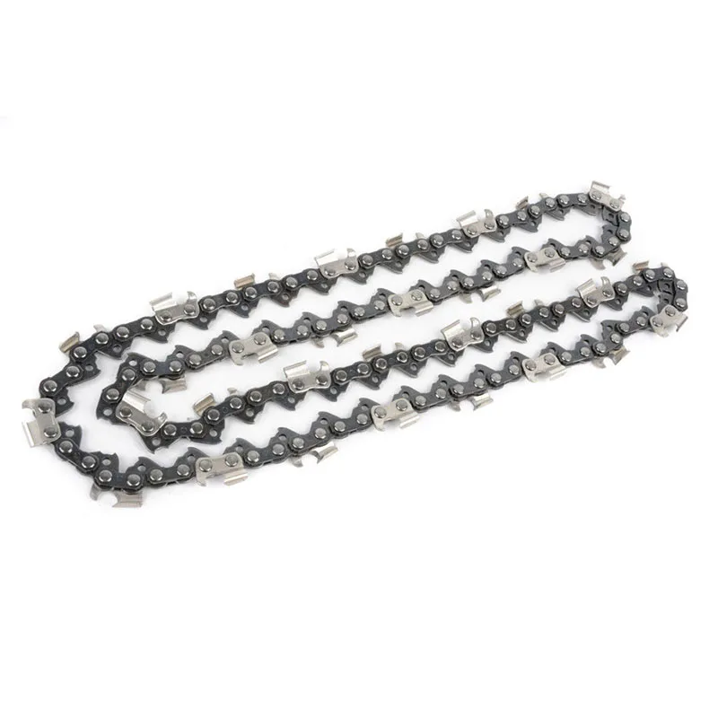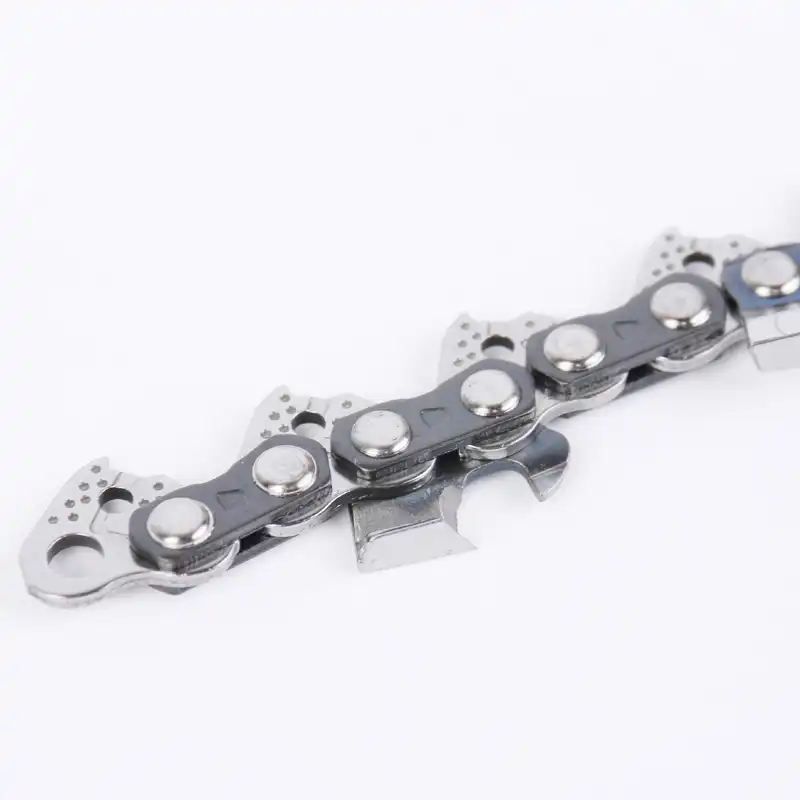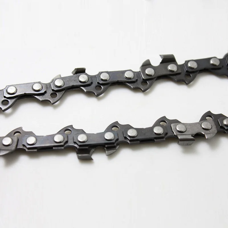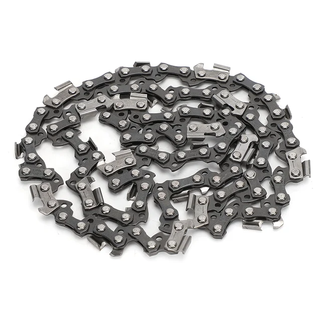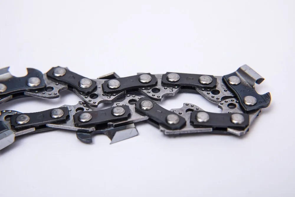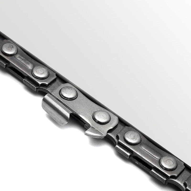 Каждая цепь состоит из звеньев; Цепь вашей пилы имеет три типа: режущие зубья, приводные звенья и стяжные ремни. Режущие зубья вашей цепи — это «деловой» конец цепи; они делают резку или скол, когда вы режете пилой. Эти режущие зубья бывают разных видов, которые называются различными профилями режущих зубьев. Следующим типом звеньев в вашей цепочке является приводное звено. Ведущие звенья перемещаются внутри канавки на направляющей шине бензопилы, в то время как ведущая звездочка соприкасается с хвостовиком звеньев. Это то, что приводит в движение цепь вашей пилы вокруг направляющей шины. Важно убедиться, что калибр вашей цепи совместим с шириной канавки направляющей шины. Стяжные хомуты — это звенья, которые соединяют вместе режущие зубья и ведущие звенья. У них нет режущих зубьев или хвостовика ведущих звеньев, эти звенья просто скрепляют цепь. Стяжной ремень с предварительно установленными заклепками называется предварительно установленным стяжным ремнем, а другая половина, имеющая только отверстия для заклепок, называется стяжным ремнем. В зависимости от расстояния между режущими зубьями вашей цепи их может быть больше или меньше.
