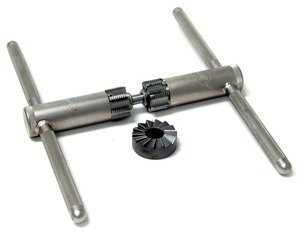 - Используемый инструмент вворачивается в трубу или навинчивается на ее конец посредством вращения воротка или плашкодержателя.